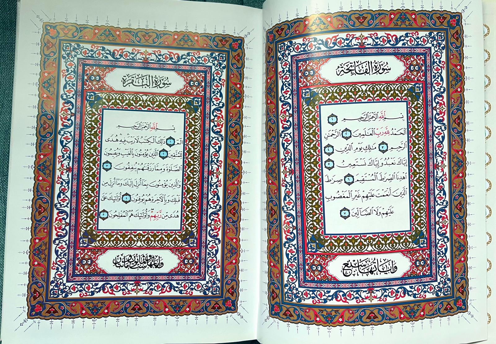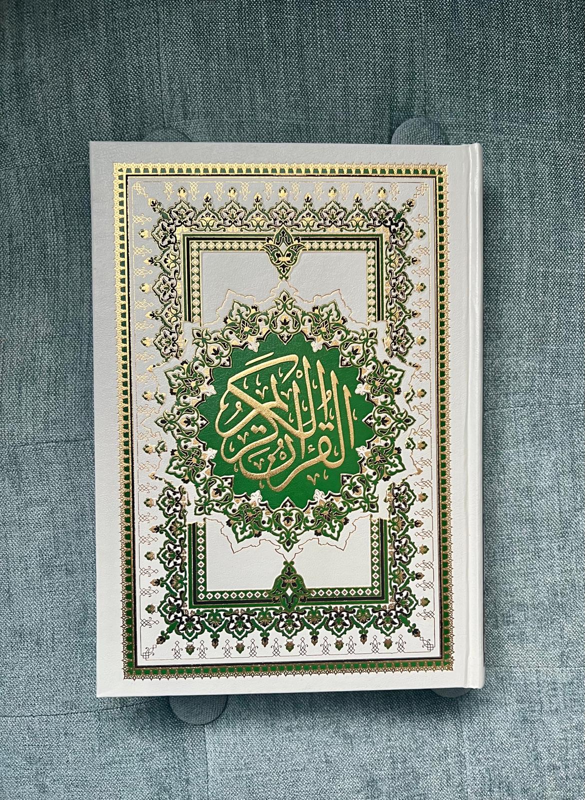 This beautiful Uthman Taha script Quran is hard cover with glossy intro pages and clear and easy on the eyes text throughout